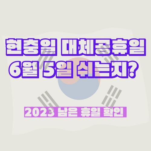 곧 다가올 6월에 있는 현충일에 대해서 알아보려고 합니다. 우리나라를 위해 희생하신 분들을 위해서 무슨 날인지 알아두는 것이 좋겠습니다. 현충일이 무슨 날인지, 대체공휴일로 지정이 되는지, 현충일에 태극기 다는 방법에 대해서 알아보고 2023년 남아있는 빨간 날(공휴일)에 대해서도 적어보겠습니다.