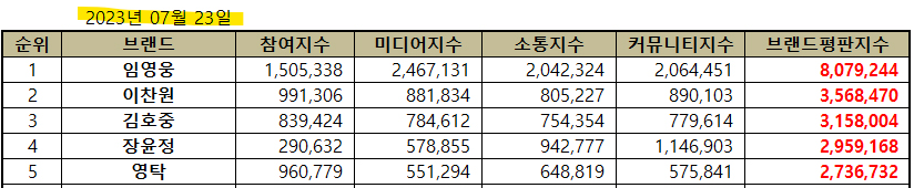 7월에 브랜드평판에 오른 사람들을 알아보겠습니다.
