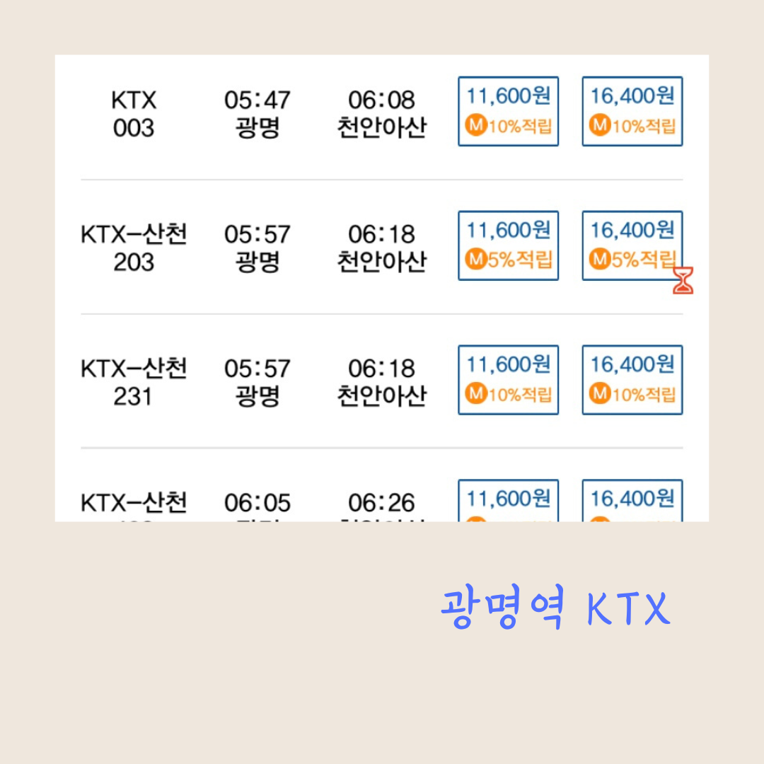 광명역 -> 천안아산역